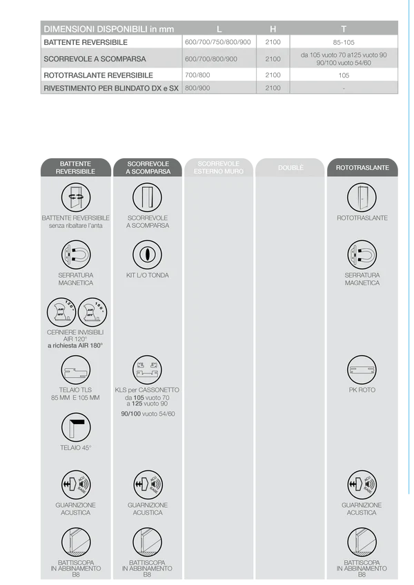 TELAIO, ANTA E COPRIFILI RESISTENTI ALL'ACQUA