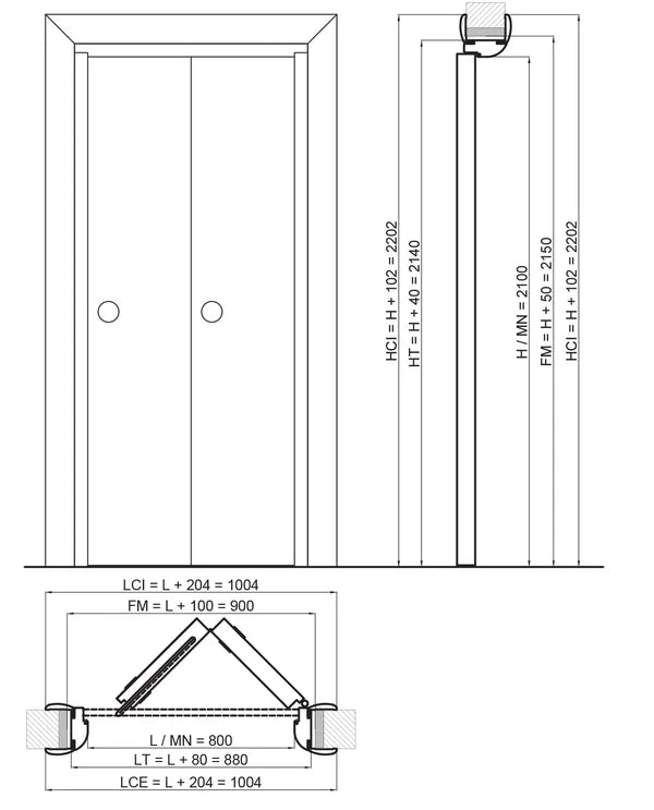 Porta da interno 1 anta pieghevole a libro TONDA BIANCO