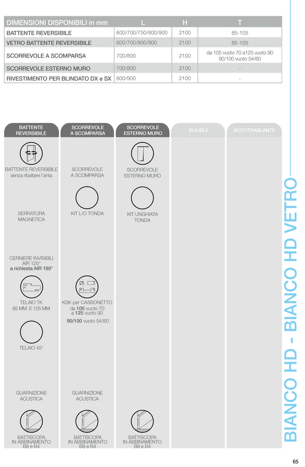 Porta da interno 1 anta scorrevole interno muro BIANCO HD VETRO