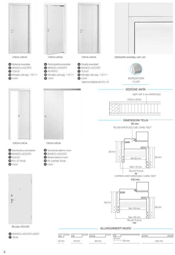 Porta da interno 1 anta scorrevole interno muro CL BIANCO LACCATO
